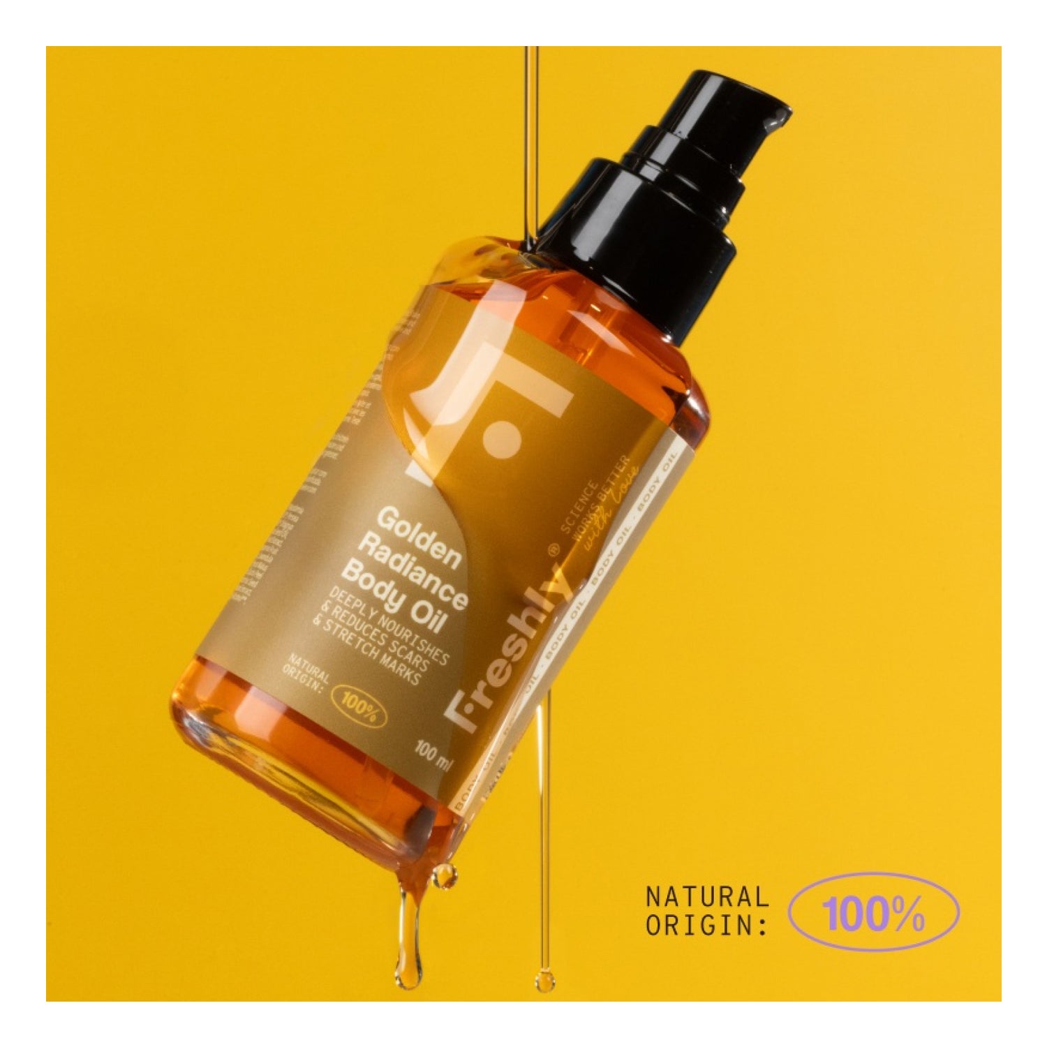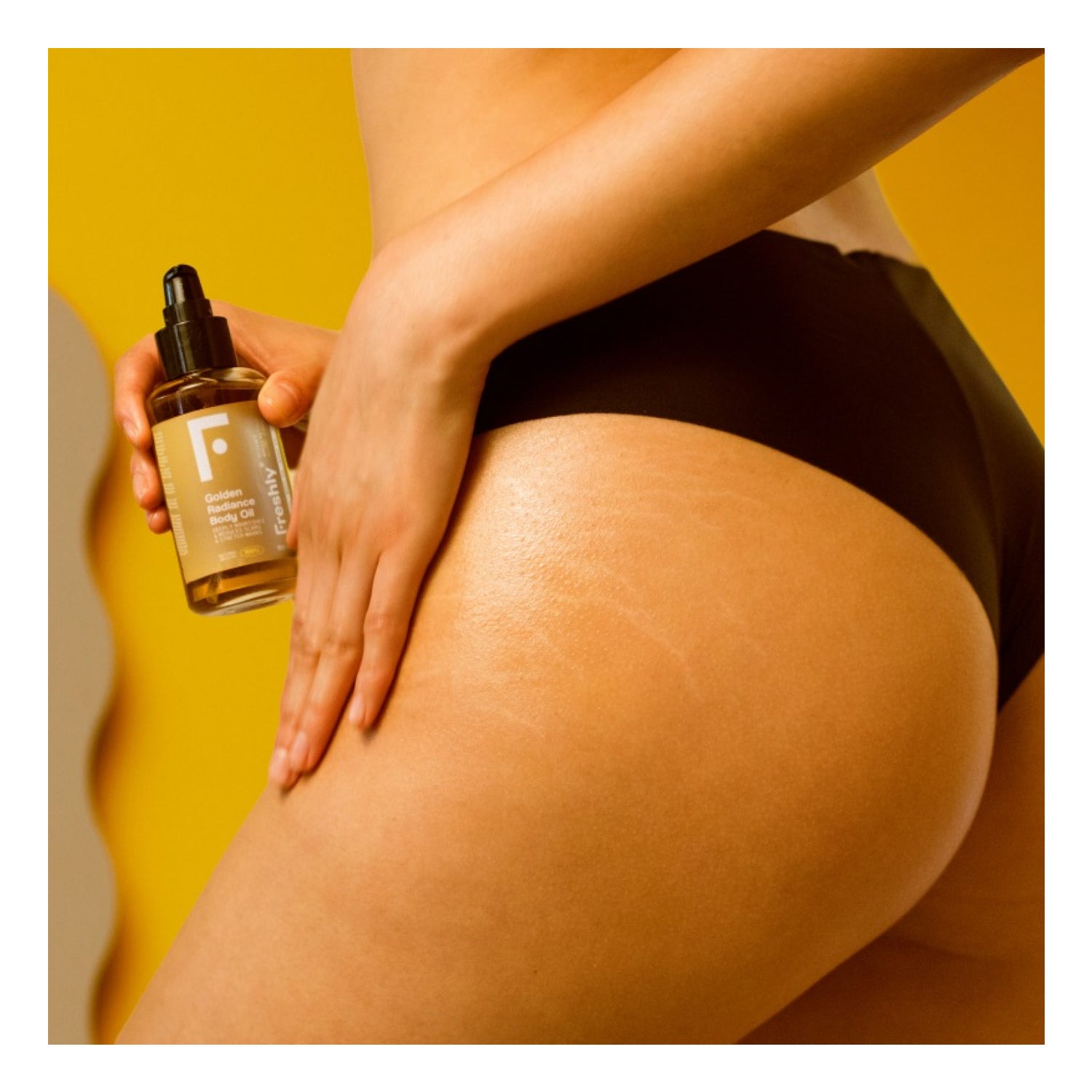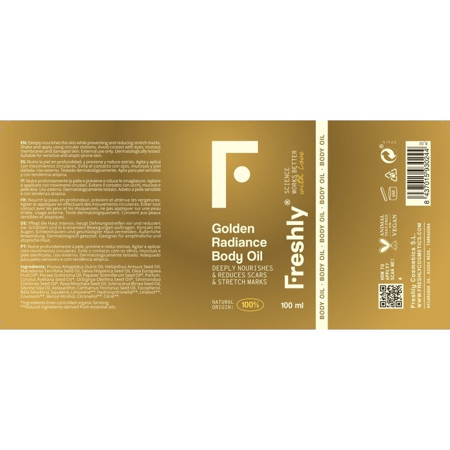 Estrias, secura, cicatrizes? Este óleo corporal 100% natural melhora a aparência da sua pele instantaneamente com 12 óleos vegetais de alto poder nutricional e, a longo prazo, otimiza o funcionamento da pele ao conter as vitaminas, oligoelementos e antioxidantes que ela precisa. Sem parabenos, silicones ou óleos minerais. É apto e recomendado durante a gravidez. De fato, os profissionais de saúde recomendam utilizá-lo para melhorar estrias na gravidez, cicatrizes e manter a pele elástica, suave e hidratada. Além disso, sua potente fórmula exerce uma ação reafirmante e antioxidante. Você pode aplicá-lo com a pele úmida ou seca, pois é de rápida absorção. Experimente e descubra por que é o mais vendido da Freshly!