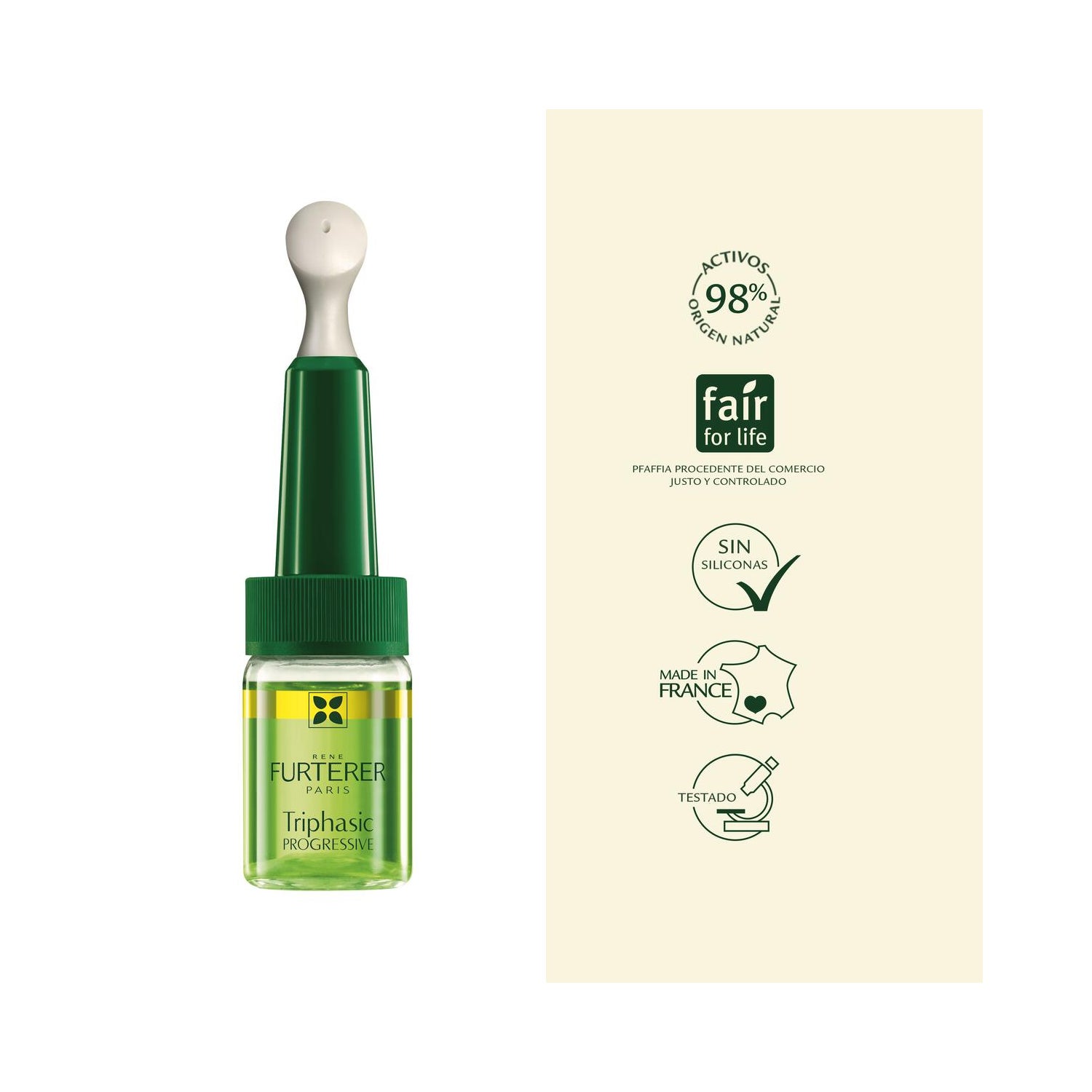 René Furterer Triphasic Progressive Hair Loss Treatment 8x5,5ml é um sérum regenerador que ajuda a reduzir a queda de cabelo de natureza hormonal ou hereditária.