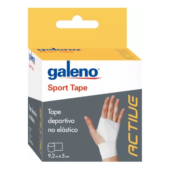 Galeno Sport Tape 9,2Mx5cm é uma fita esportiva de cor branca, com dimensões de 9,2 metros de comprimento e 5 centímetros de largura, projetada para a bandagem e suporte durante a prática de atividades esportivas.