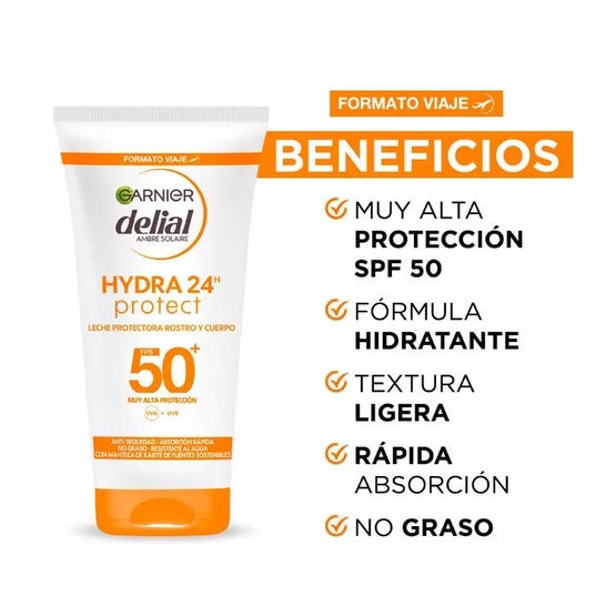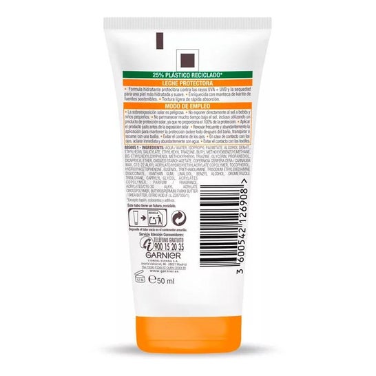 Garnier Delial Ultra Practical Sunscreen Milk SPF50+ 50ml é um protector solar muito elevado e não gorduroso.