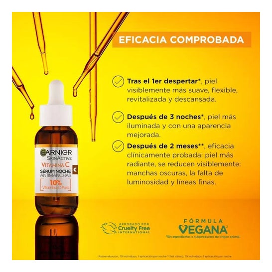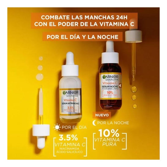 Garnier SkinActive Anti-Spot Night Serum 30ml é um soro noturno desenvolvido para tratar manchas na pele. Com uma concentração de 10% de Vitamina C Pura, este produto destaca-se pela sua capacidade de revitalizar a pele desde a primeira aplicação.
