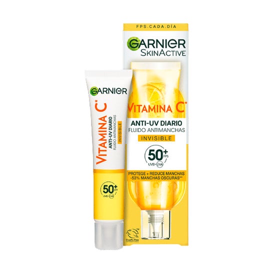 Garnier Skinactive Vitamina C Fluido Antimanchas SPF50 Invi 40ml é um fluido diário projetado para iluminar e proteger a pele do rosto. Com um alto fator de proteção solar SPF50+, este produto atua para prevenir e reduzir as manchas escuras, oferecendo uma eficácia comprovada.