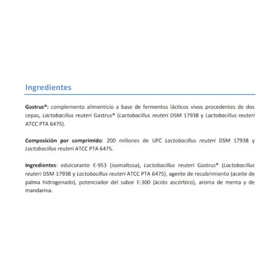 Gastrus comprimidos mastigáveis é um suplemento alimentar que facilita uma ação antimicrobiana . Graças à sua fórmula enriquecida com lactobacillus reuteri, reduz a