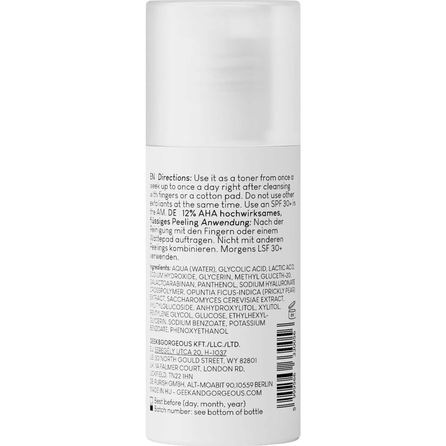 Geek & Gorgeous Smooth Out 12% AHA + Cactus Liquid é um esfoliante facial concentrado que combina 12% de AHA com extrato de Cacto Nopal. Este produto foi projetado para oferecer um tratamento antienvelhecimento, promovendo uma pele mais fresca, saudável e atraente.