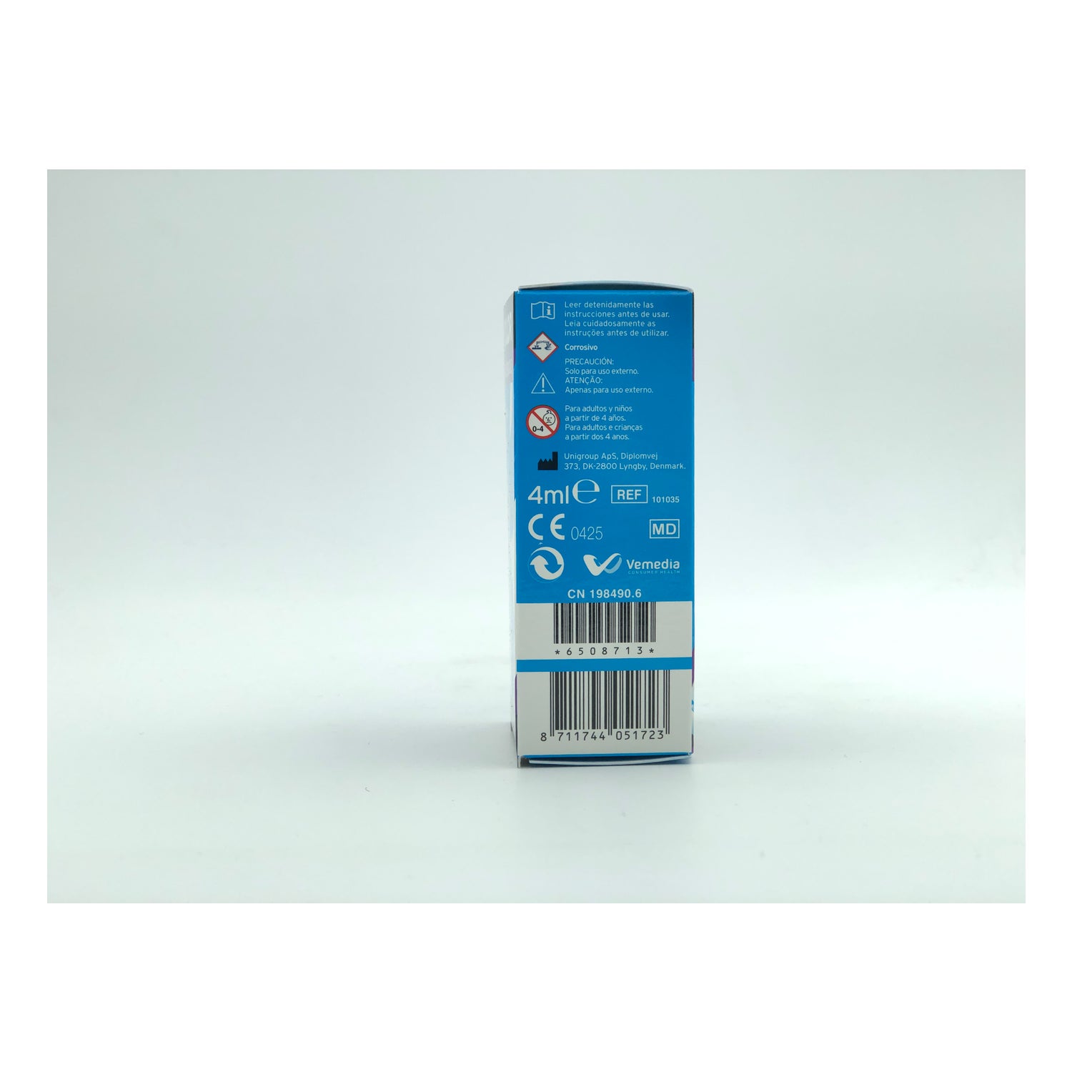 É um produto sanitário certificado com a marca CE, com aplicação tópica diretamente sobre os papilomas. Não aplicar sobre papilomas genitais ou faciais.