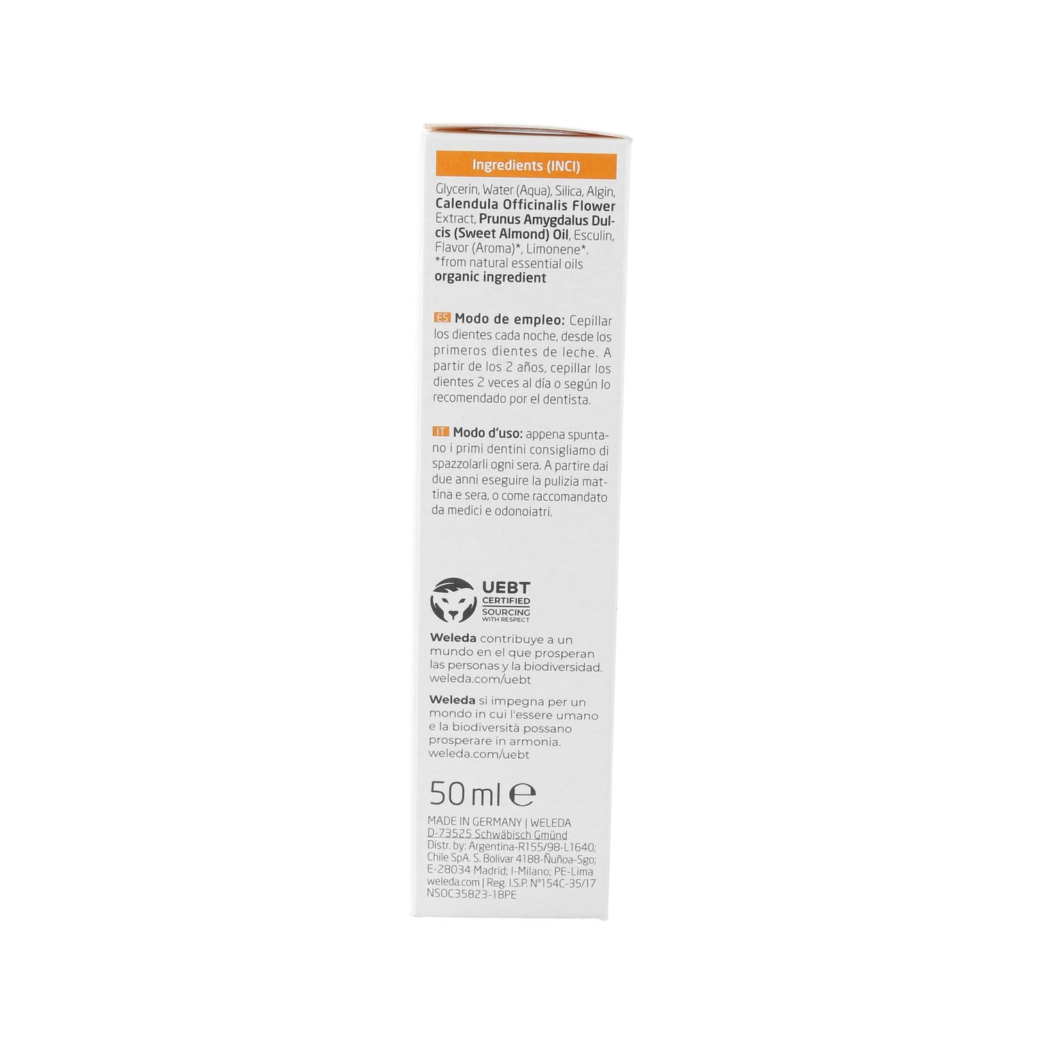 A pasta de dentes para crianças Weleda é uma pasta de dentes que elimina a placa bacteriana e previne a formação de cáries nos dentes de leite. Graças a ingredientes naturais como o extrato de calêndula, que protege as gengivas, o óleo de hortelã-pimenta, o óleo de funcho..., cuida da boca dos mais pequenos.