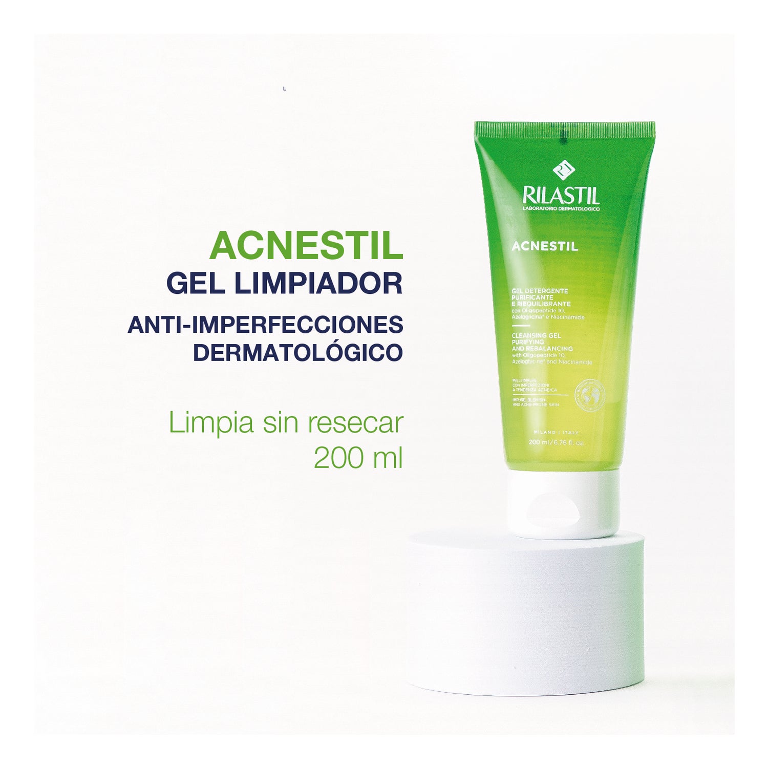 Rilastil Acnestil Gel de Limpeza Anti-imperfeições 200ml é um produto de limpeza facial que ajuda a purificar e a hidratar a pele sem deixar um efeito seco e repuxado.