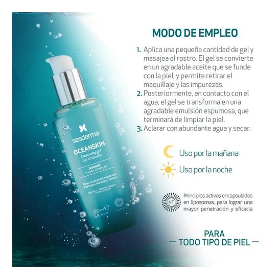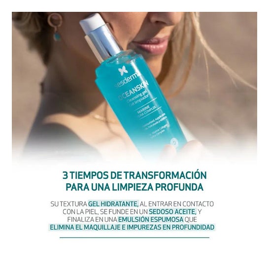 Sesderma Oceanskin Cleansing Gel 200ml é um gel de limpeza facial que proporciona uma hidratação profunda à pele, deixando-a livre de impurezas.