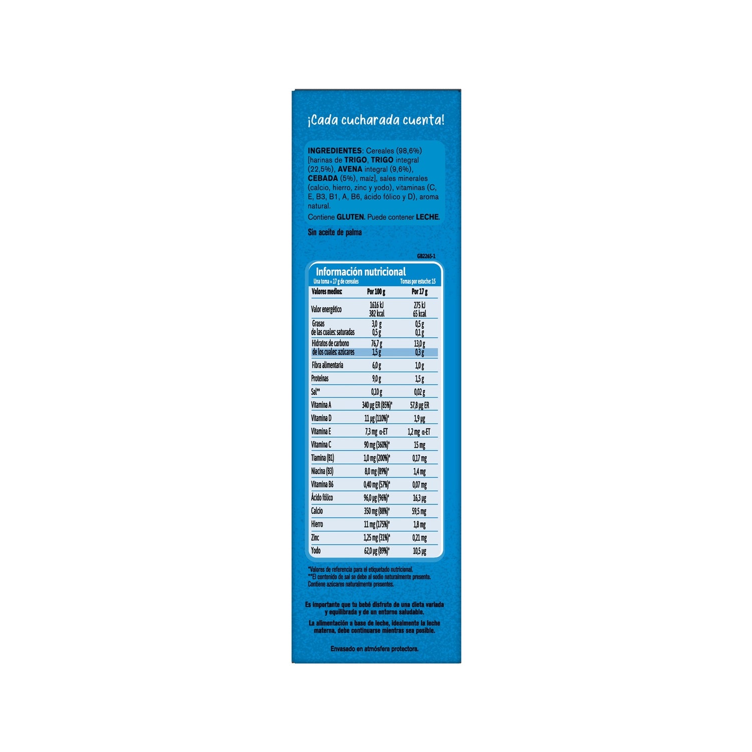 Com cereais integrais para bebé, que proporcionam a riqueza nutricional dos cereais. Com ferro e 12 vitaminas e minerais.