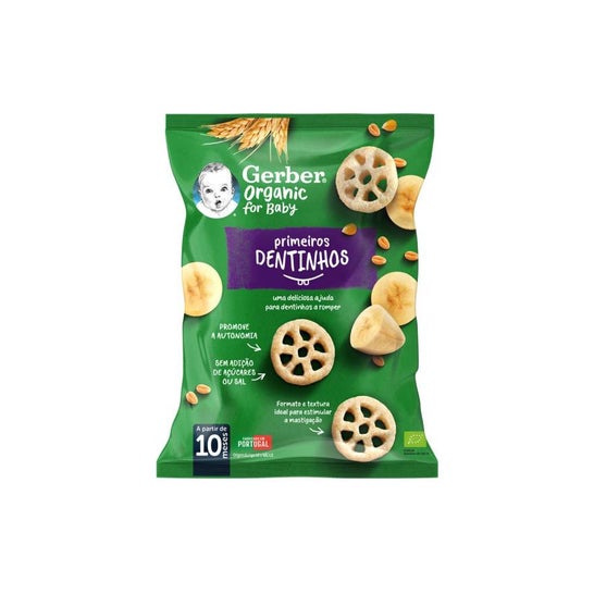 Gerber Organic Primeiros Dentinhos +10M 28g é um snack biológico projetado para favorecer a autonomia dos mais pequenos, ao mesmo tempo que oferece um delicioso apoio durante a etapa de erupção dental.