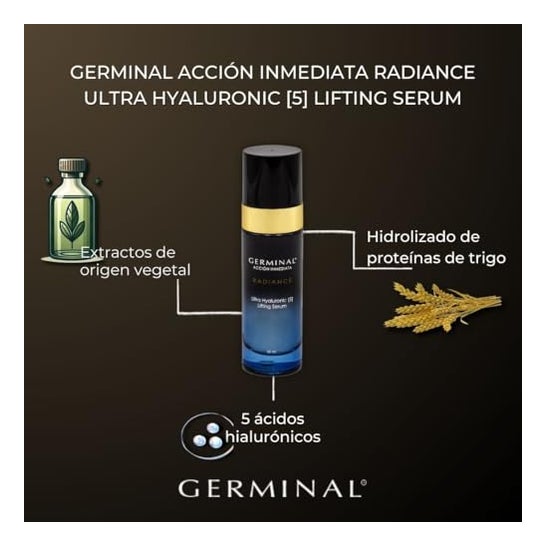 Germinal Radiance Ultra Hyaluronic [5] Lifting Serum 30ml é um sérum que proporciona ação ultra hidratante. Formulado com 5 ácidos hialurónicos, está indicado para peles com envelhecimento prematuro, desidratadas, opacas e cansadas.