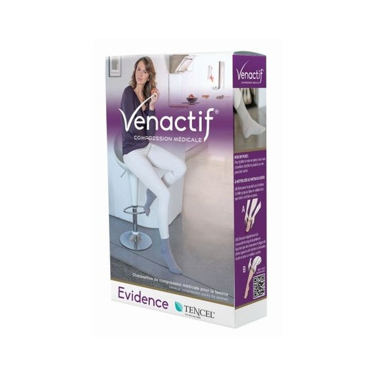 Meias de compressão projetadas para aliviar pernas cansadas e favorecer o retorno venoso. Feitas com microfibra ultra elástica, um material hipoalergénico, fácil de manusear e com excelente tolerância cutânea e opacidade. É recomendado para descansar as pernas e favorecer o retorno venoso e a circulação. Com um design patenteado, tem uma sola arejada que proporciona um efeito de massagem chamado venactif. Oferece uma ação de termorregulação e conforto, sendo um material que absorve e elimina o calor. Indicado para mulheres com distúrbios venosos, atletas, que passam muito tempo em pé e para descansar as pernas.