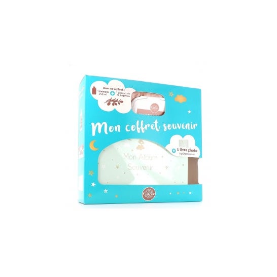 Este baú contiene: · Gifrer Lingettes à l'Huile d'Olive Bio 70uds: toalhetes de limpeza com óleo de oliva biológico formulados especialmente para a pele delicada dos bebés e compostos por quase 99% de ingredientes de origem natural. · Gifrer Liniment Oléo-Calcaire 250ml: linimento óleo-cálcico natural, sem conservantes, nem perfume, que facilita a limpeza diária do rabinho dos bebés e ajuda a protegê-lo de irritações. Especialmente indicado em caso de vermelhidão na zona da fralda. · Um álbum de fotos personalizável de 64 páginas de 15x20cm.