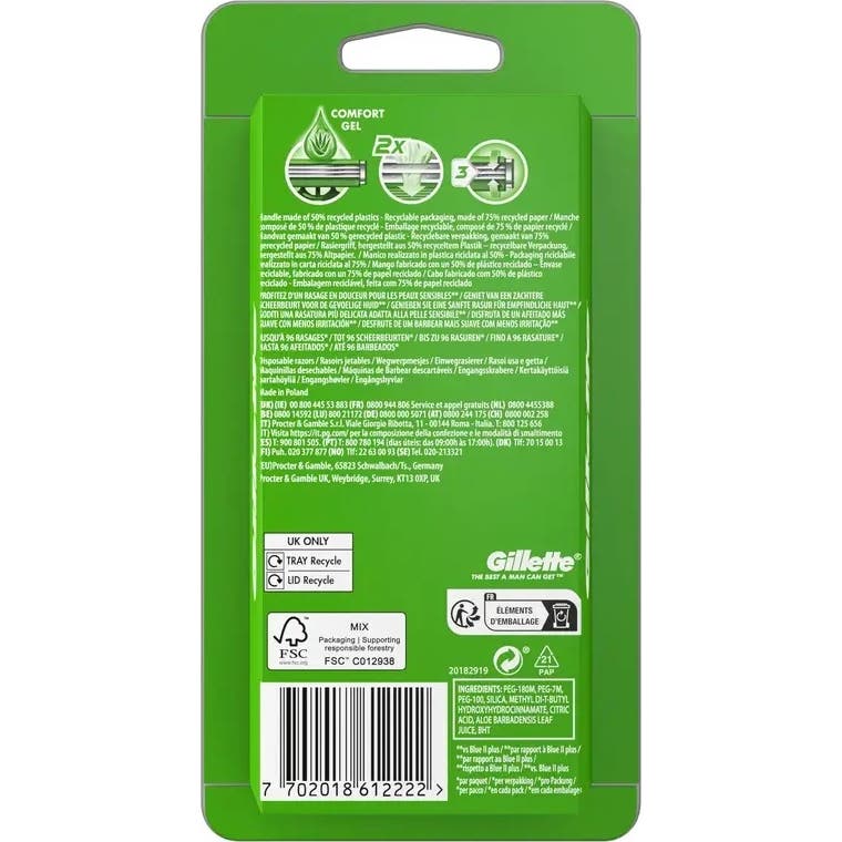 Gillette Sensor3 Sensitive Lâmina de Barbear Descartável 5un é uma opção ideal para um barbear confortável e eficaz. Este produto conta com três lâminas projetadas para proporcionar um barbear delicado. A superfície das lâminas é tratada com cromo, o que adiciona uma camada de proteção adicional durante o uso.