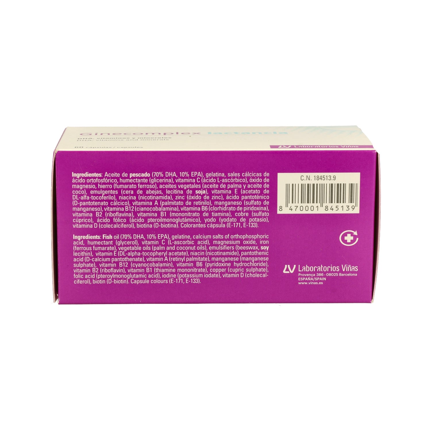 Laboratorios Viñas Ginecomplex Lactancia 60caps é um suplemento alimentar que combina ácidos gordos Omega-3, oligoelementos, vitaminas e minerais que ajudam a cobrir as necessidades nutricionais da mãe durante a amamentação.