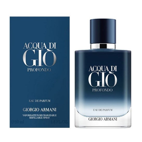 Giorgio Armani Aqua di Gio Men Profondo Eau de Parfum 50ml é uma fragrância intensa e duradoura com notas marinhas e cítricas.