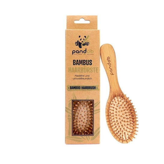 A escova de cabelo de bambu Pandoo é quase inteiramente feita de bambu natural e ecológico. A escova é cuidadosamente processada e tem uma longa vida útil. É feita de bambu, vegana, muito leve e resistente. O bambu tem características que tornam a escova da Pandoo única: cerdas arredondadas para um efeito de massagem extra; ecológica e livre de plástico; vegana e natural; lavável, leve e resistente; adequada para pentear e desembaraçar qualquer tipo de cabelo; produto de qualidade de longa duração.