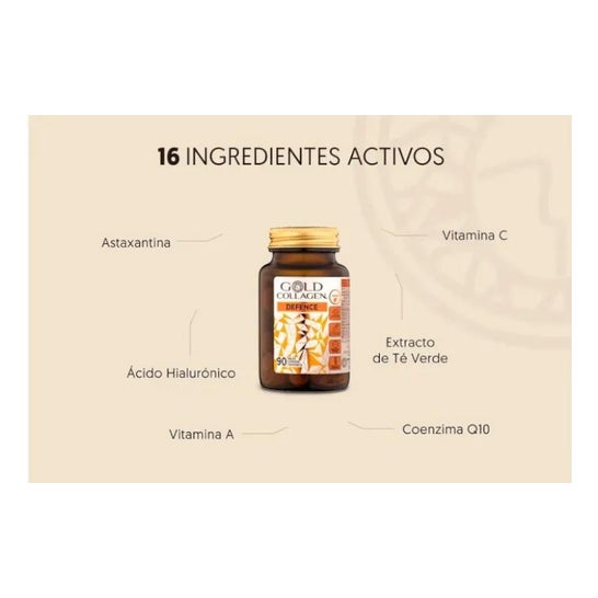 Gold Collagen Defence 90comp é um complemento projetado para proteger e melhorar a saúde da pele contra o envelhecimento e a exposição solar. Sua fórmula avançada combina 16 ingredientes ativos que defendem o colágeno, preparam a pele para a radiação solar e são adequados para adultos preocupados com a perda de firmeza e o aparecimento de rugas.