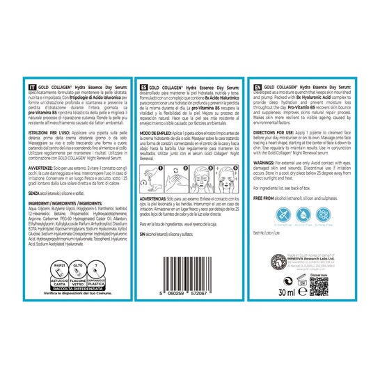 Soro facial concentrado formulado com ácido hialurónico e pró vitamina B5. Ajuda a hidratar e reter a humidade enquanto protege o rosto contra os danos causados pelos radicais livres e outros agressores ambientais. Também melhora a textura da pele e ajuda a reduzir o aparecimento de linhas finas e rugas. Adequado para todos os tipos de pele.