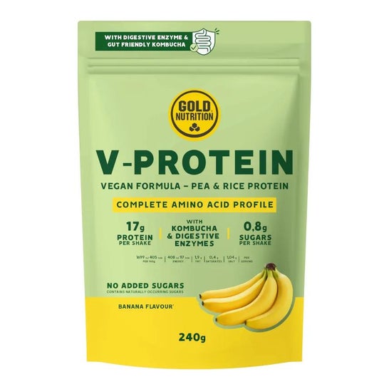 Proteína vegana com sabor a banana com uma composição que contém todos os aminoácidos essenciais para o organismo, sem açúcares. Tem baixo teor de gorduras saturadas e fornece 83% de proteínas vegetais. Feito com uma mistura patenteada de vegetais, frutas e plantas, chamada Spectra, rica em antioxidantes e nutrientes. Adequado para pessoas com intolerância à lactose ou a outro componente de proteínas animais. Com ingredientes de cultivos orgânicos.