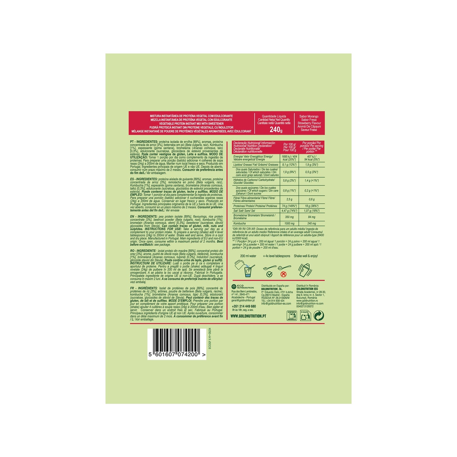 Gold Nutrition V-Protein Strawberry 720g é um batido proteico que actua como adjuvante nos processos de emagrecimento .