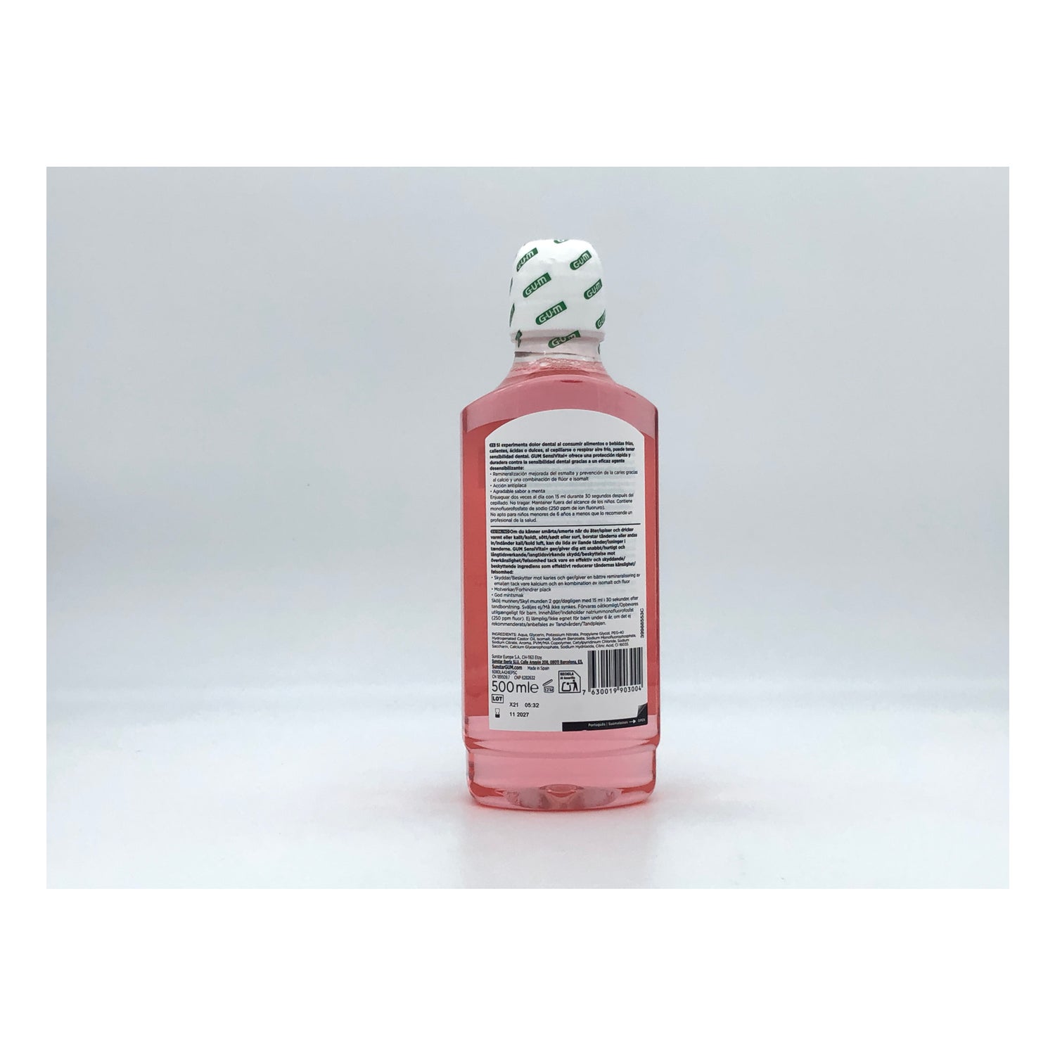 Gum Sensivital + 500ml elixir bucal ideal para cuidados dentários e orais e higiene.O GUM® Sensivital mouthwash foi especificamente concebido para pessoas com dentes sensíveis, uma vez que não contém álcool, reduzindo assim a sensação de irritação e comichão. Além disso, seu sabor agradável irá repelir o mau hálito e sua ação anti-séptica irá reforçar o esmalte dos dentes, combatendo germes e bactérias que causam a placa bacteriana.