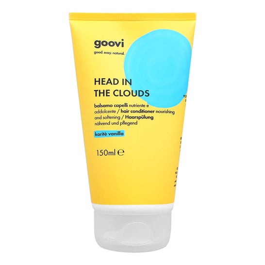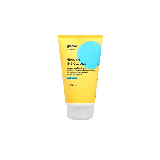 Goovi Head in the Clouds Bálsamo para Cabelo Karité Baunilha 150ml é um condicionador nutritivo e revitalizante para o cabelo com óleos de argão, linhaça e extrato de kumquat. Sem silicones. Vegano. Livre de óleos minerais, SLES, SLS, PEG, silicones, sulfatos, corantes artificiais e fragrâncias sintéticas. Testado ao níquel.