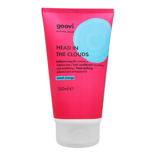 Goovi Head in the Clouds Bálsamo para Cabelo Sweet Orange 150ml é um condicionador nutritivo e revitalizante com óleos de argão, linhaça e extrato de kumquat. Sem silicones. Vegano. Livre de óleos minerais, SLES, SLS, PEG, silicones, sulfatos, corantes artificiais e fragrâncias sintéticas. Testado ao níquel.