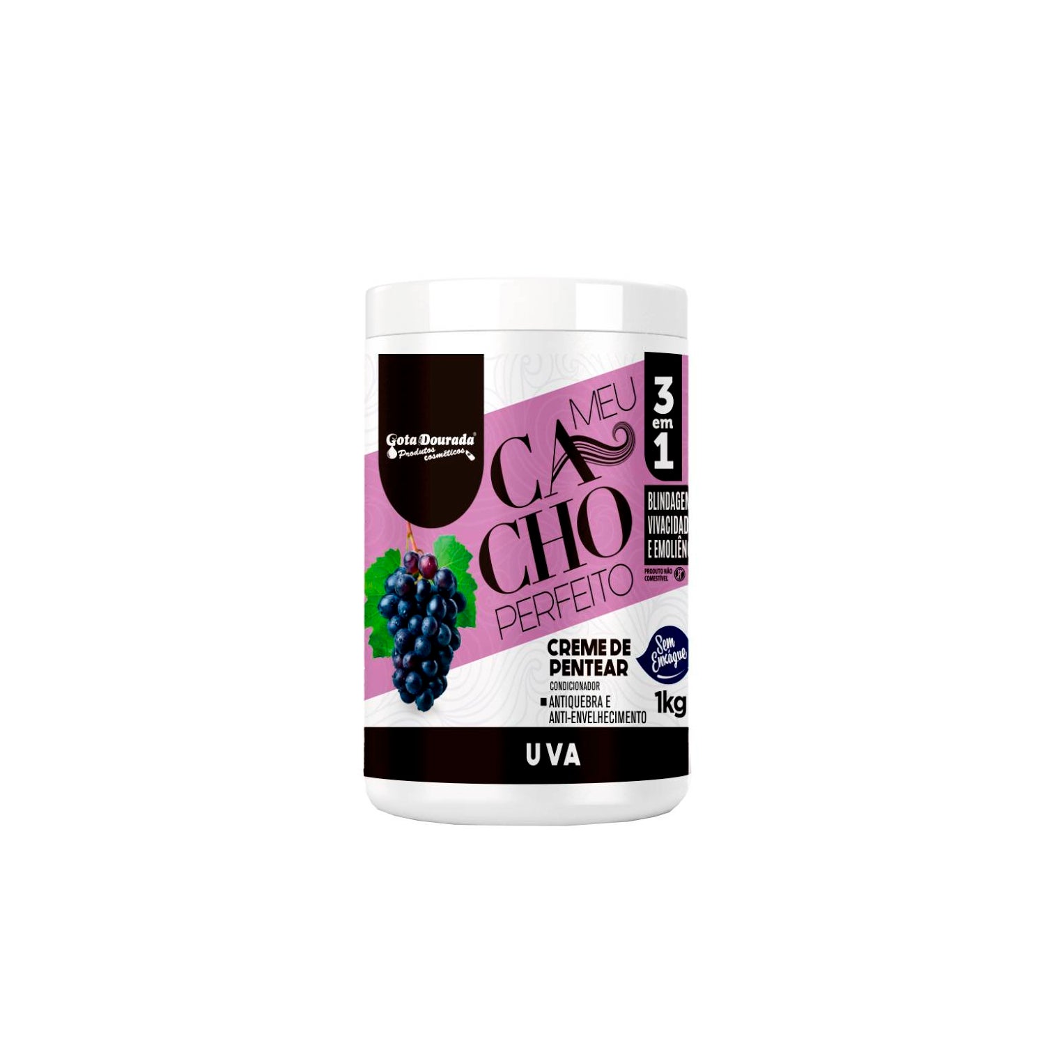 Gota Dourada Meu Cacho Perfeito Creme de Pentear Uva 1000g é um produto projetado para alcançar cachos bem definidos, hidratados e com um brilho notável.