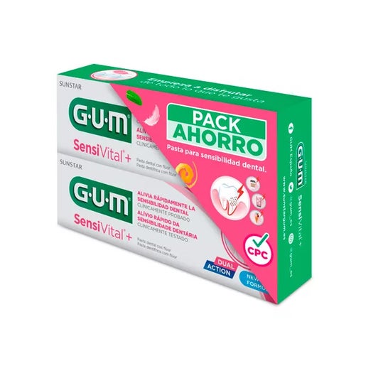 Gum Sensivital Pasta Dentífrica 2x75 ml é um pacote de duas pastas dentífricas de 75 ml, indicado para adultos e crianças maiores de 7 anos. Ajuda a reduzir a sensibilidade dental causada por alimentos frios, quentes, doces ou ácidos. Oferece uma textura suave e sabor a menta.