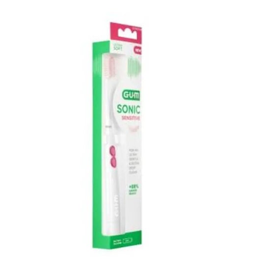 Gum Sonic Sens Escova de dentes Spazz 1pc escova de dentes ultra macia, concebida com tecnologia sónica a pilhas com cerdas delicadas e macias. o produto proporciona uma limpeza ultra macia e profunda onde a placa bacteriana se acumula. remove a placa bacteriana 88% mais completamente nas áreas de difícil acesso. é compatível com todas as cabeças de escovas de dentes sónicas de gengivas.
