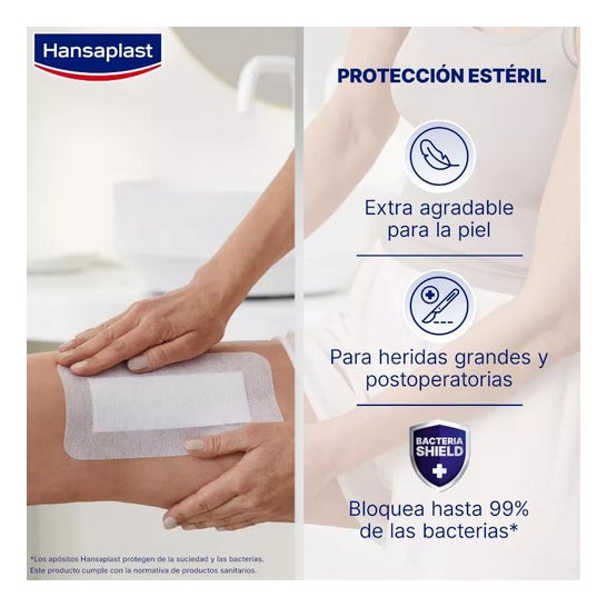 Hansaplast Med+ Sensitive 4XL Curativo 10x20cm 5uds são almofadas ou compressas estéreis que se aplicam a uma ferida para promover a cicatrização e proteger a ferida.