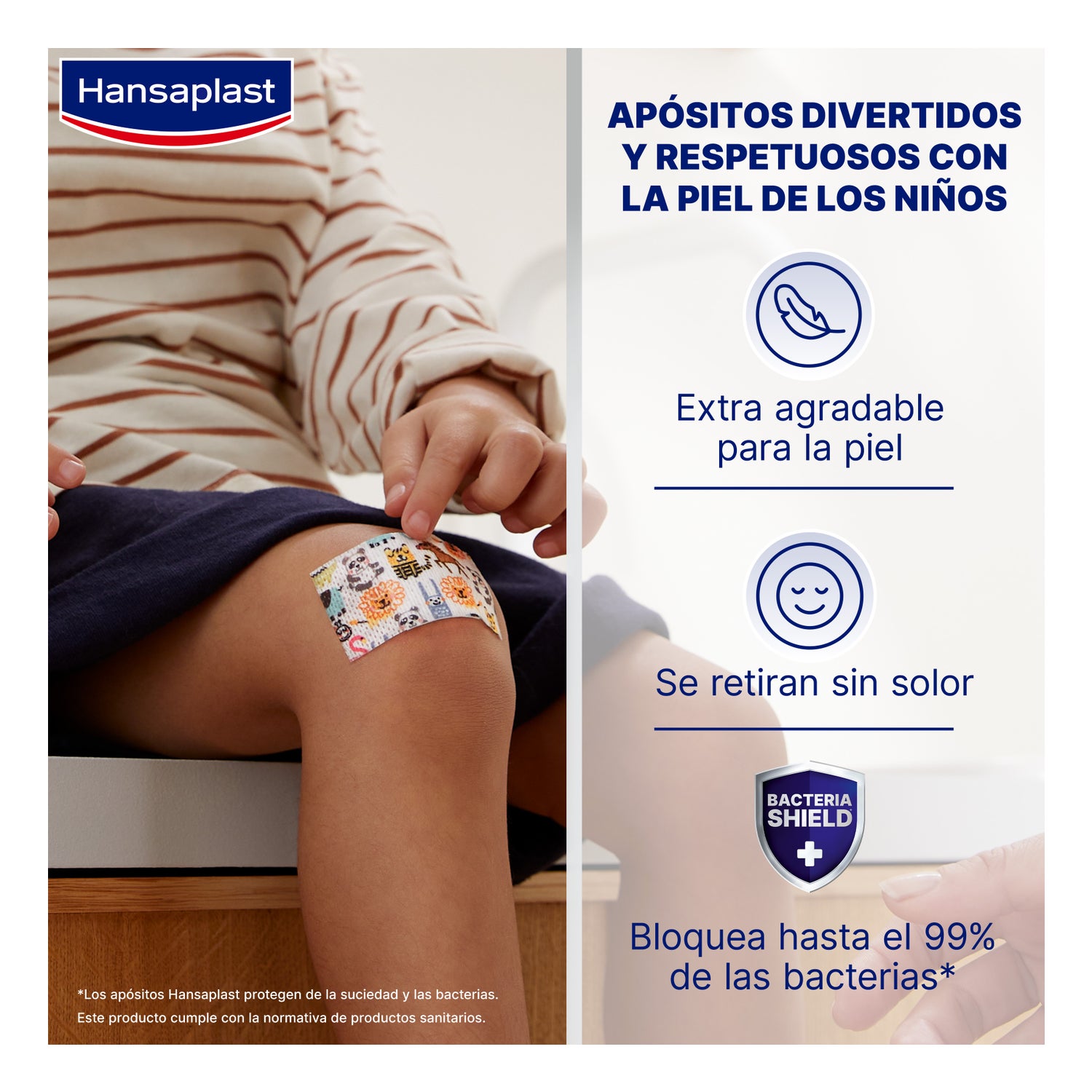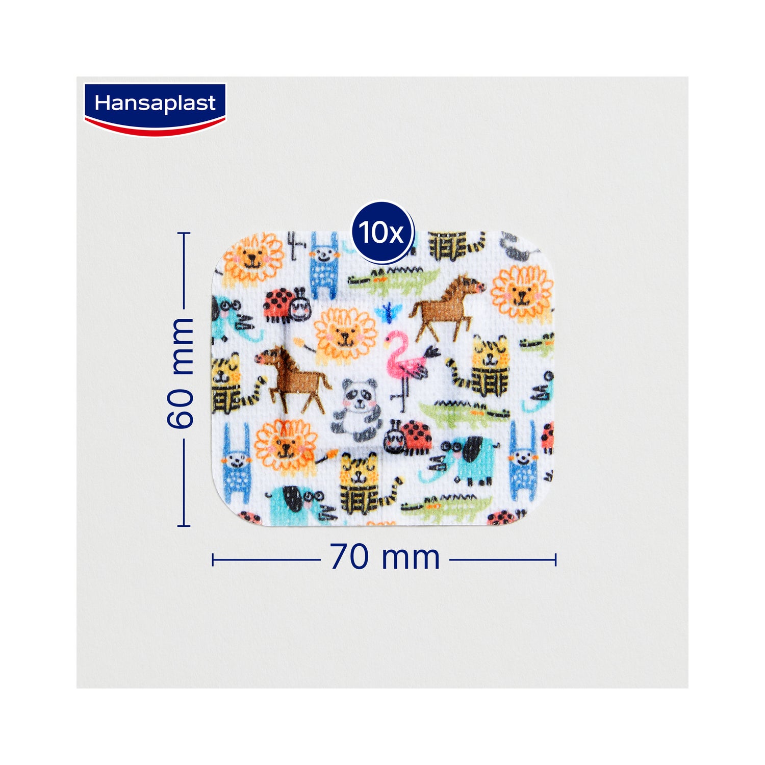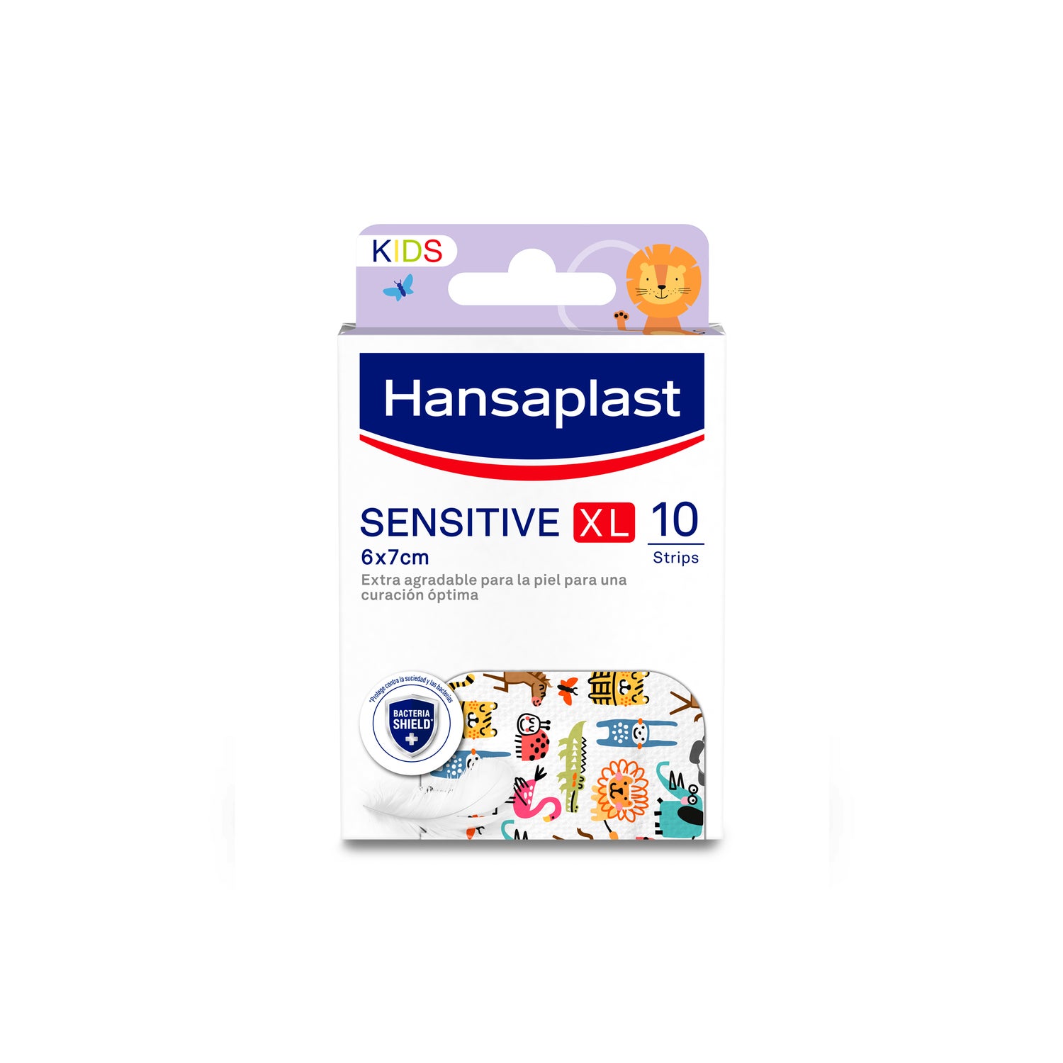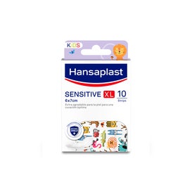 Hansaplast Sensitive XL Kids 10 curativos são curativos especialmente projetados para o cuidado da pele infantil.