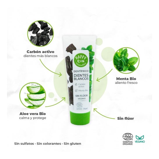 Pasta dentária que ajuda a manter uma higiene oral óptima, livre de bactérias e mau hálito, com efeito branqueador graças à sua fórmula com carvão activo e ingredientes de origem biológica. Tem um sabor a menta e eucalipto que deixa um hálito fresco e não contém flúor, por isso protege o esmalte.