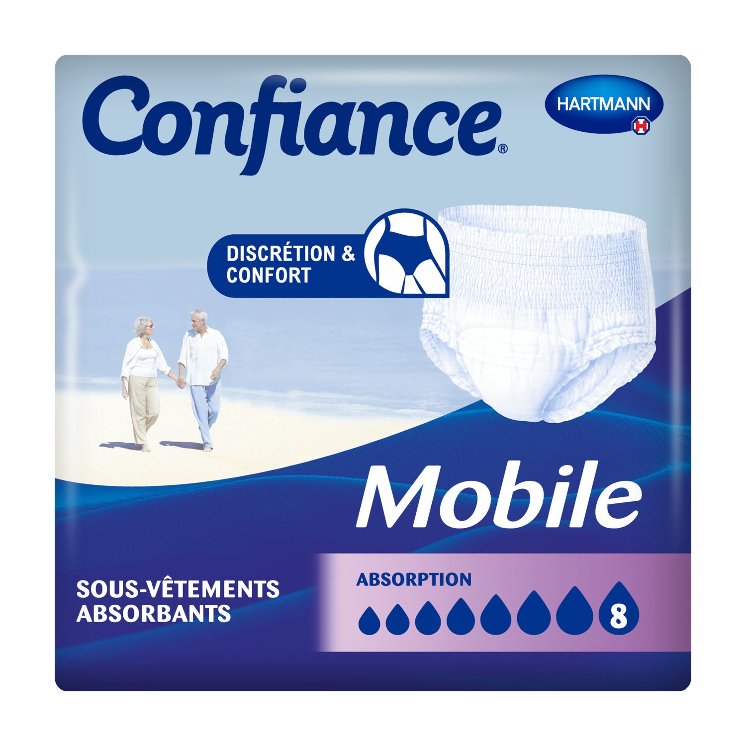 As cuecas absorventes Hartmann Confiance Mobile 8 Drops M 14 são cuecas para problemas moderados de incontinência urinária, com absorção rápida de urina "Dry Plus" que mantém a pele seca e neutraliza os odores. Equipadas com barreiras laterais anti-fugas na zona das virilhas, estas cuecas absorventes oferecem uma proteção eficaz contra as fugas, qualquer que seja a sua atividade. O forro exterior reversível e micro-ventilado permite que a pele respire, enquanto o tecido macio oferece uma sensação agradável contra a pele. Dermatologicamente testado.Tamanho M: circunferência da anca 80-120 cm.Pacote de 14 cuecas.Absorção de 8 gotas.