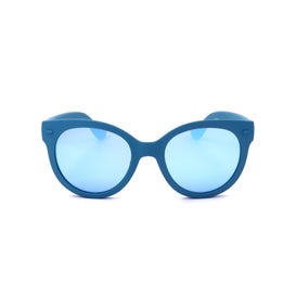 Óculos de sol com um design moderno unissexo e um índice de protecção solar muito elevado. Têm lentes de celulose espelhadas a azul claro, que actuam como uma barreira contra 100% dos raios UV. Têm uma moldura de plástico azul durável que se adapta confortavelmente a todas as anatomias. Ajudam a manter os olhos naturalmente hidratados, prevenindo a secura causada por factores ambientais. São adequados para passeios ao ar livre, lugares com muita luz ou para complementar qualquer aspecto. Testado sob controlo oftalmológico.