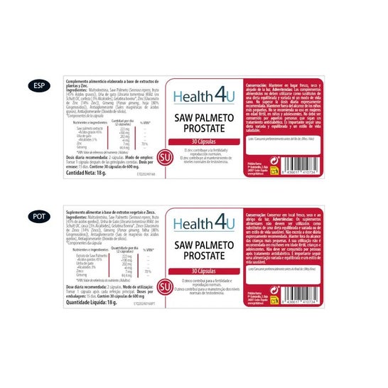 Health 4U Saw Palmeto Prostate 30caps é um suplemento alimentar formulado com extratos de plantas e zinco. Este produto foi projetado para contribuir para: