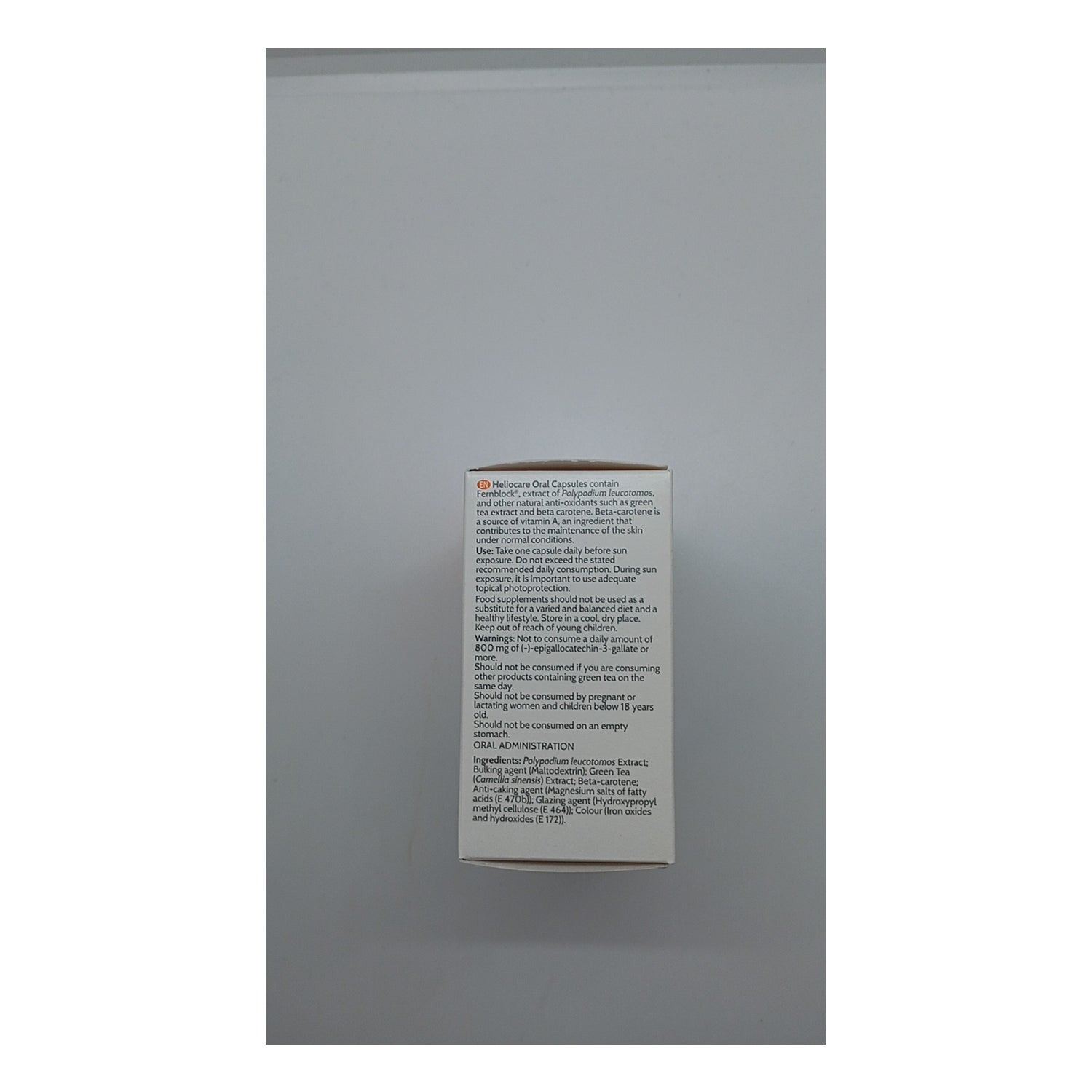 O Heliocare Cápsulas Oral 90 cápsulas é um suplemento que ajuda a evitar a oxidação da pele, exercendo uma forte prevenção do envelhecimento cutâneo graças a esta prático protetor de via oral. Ao ingerir as cápsulas antes da exposição solar, este suplemento à base de Fernblock® potencia a proteção da pele de uma forma uniforme. Além disso, possui propriedades antioxidantes e foto protetoras que preservam as defesas cutâneas e protegem a pele perante os riscos de uma exposição continuada aos raios UVA e UVB.