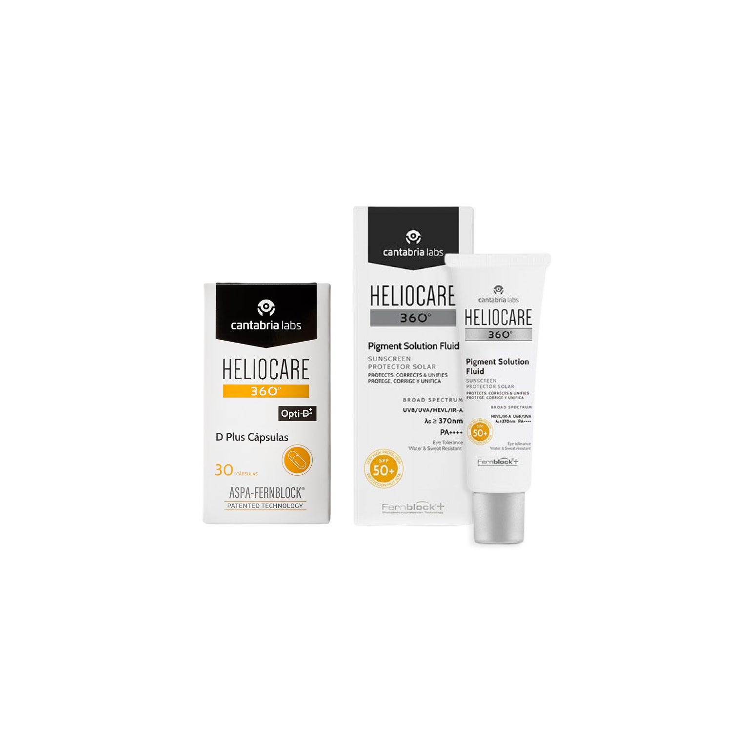 Heliocare Pack 360º Pigment Solution Fluid SPF50+ 50 ml + D Plus Cápsulas 30 caps contém: