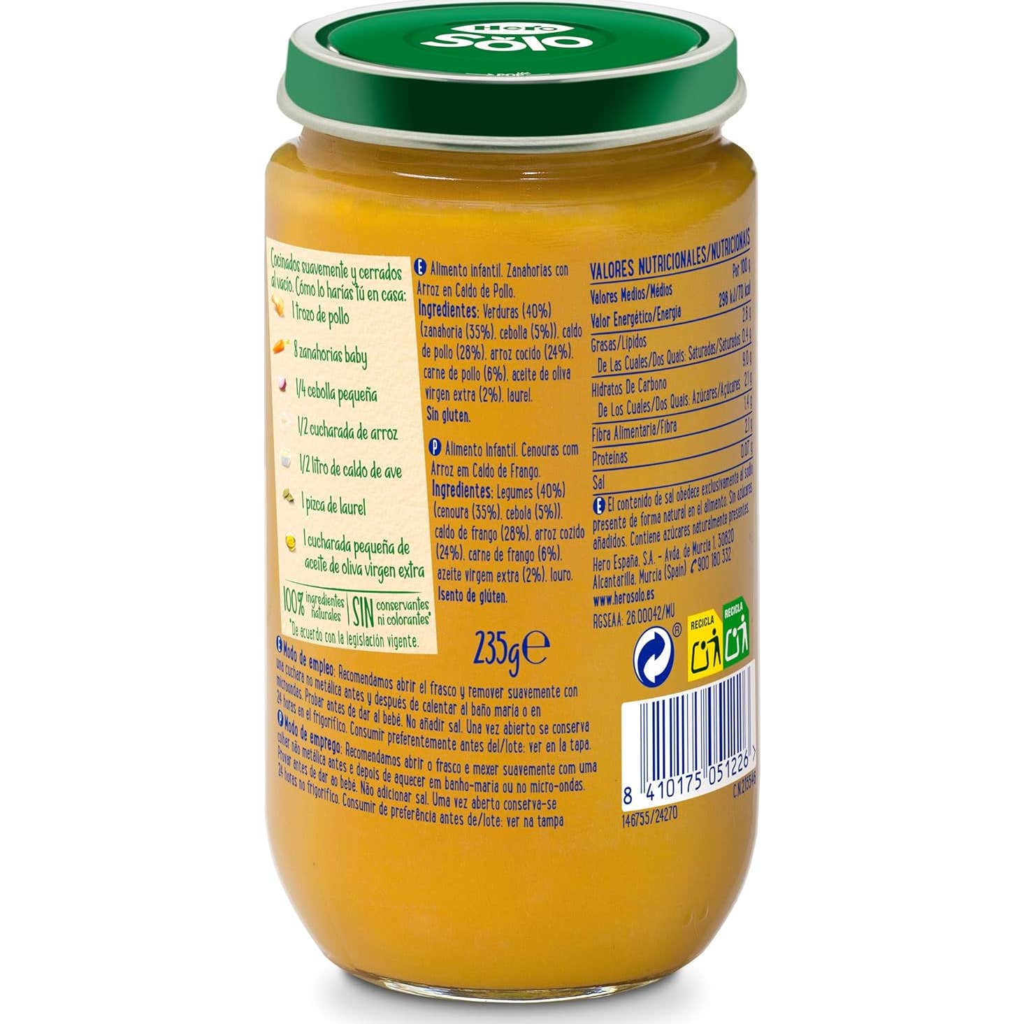 Hero Baby Cenouras com Arroz em Caldo de Frango é um potinho projetado especialmente para bebês a partir de seis meses de idade. Este produto é elaborado seguindo rigorosos padrões de qualidade, garantindo uma opção saudável e segura para os menores.