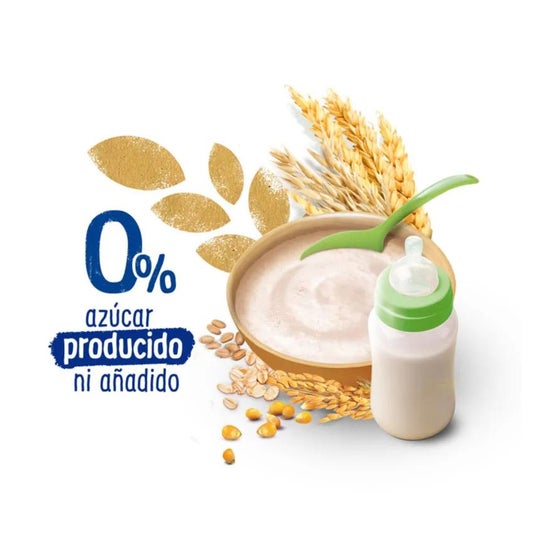 Alimento para bebés pronto a comer feito com farinha de arroz enriquecida com vitaminas e minerais. É um alimento para bebé rico em nutrientes, ideal para a hora do lanche. Sem glúten e sem lactose. Adequado para bebés a partir dos 4 meses de idade.