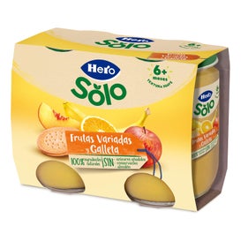 Hero Merienda Frutas Variadas e Biscoito 2x190 g é um pacote de dois potes de 190 g de purê de frutas variadas com biscoito, indicado para bebês a partir de 6 meses. Foi pensado para a alimentação complementar e para oferecer um lanche prático.