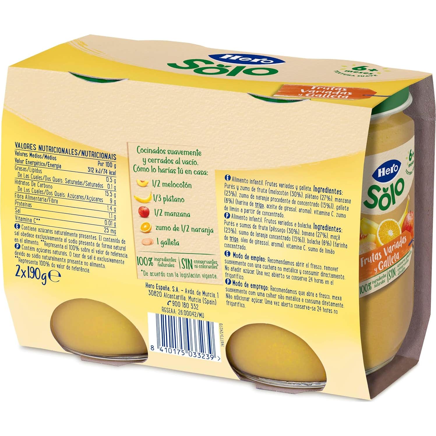 Elaborado com ingredientes naturais, e não contém amidos adicionados nem açúcares extras, apenas os presentes na fruta. Fornece vitamina C e energia, com uma fórmula suave e equilibrada. Além disso, este produto: