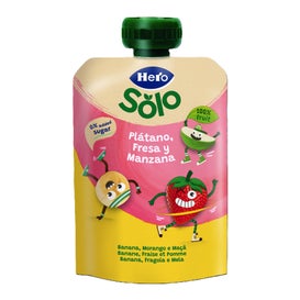 Hero Solo Banana Morango e Maçã é um produto projetado para oferecer uma alimentação natural e nutritiva para os menores, a partir de seis meses de idade. Esta opção alimentar é apresentada em um formato de sachê prático, ideal para desfrutar em qualquer lugar, sem necessidade de refrigeração.