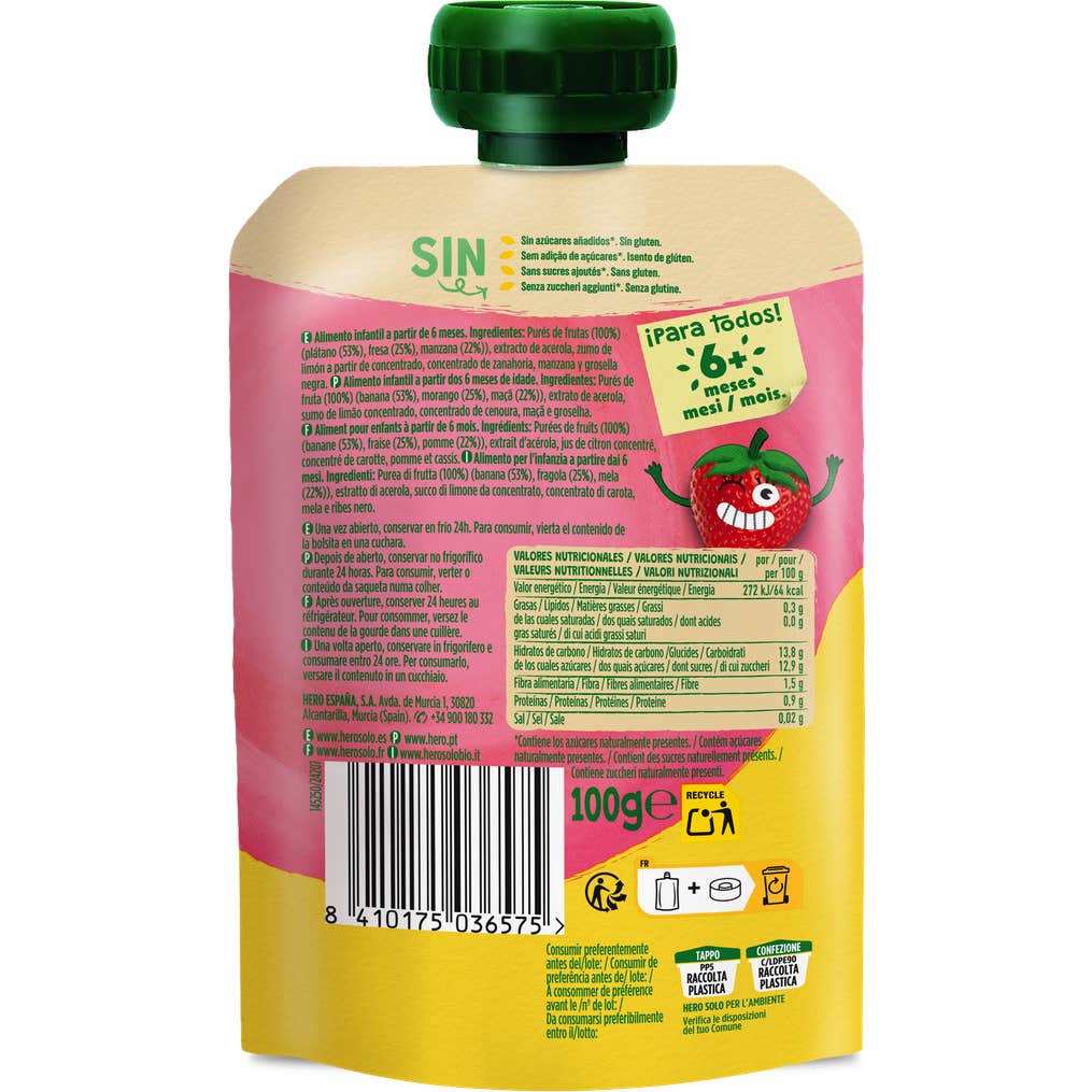 Os ingredientes do Hero Solo são 100% naturais, sem conservantes ou corantes adicionados. Sua composição inclui purês de frutas cuidadosamente selecionadas: