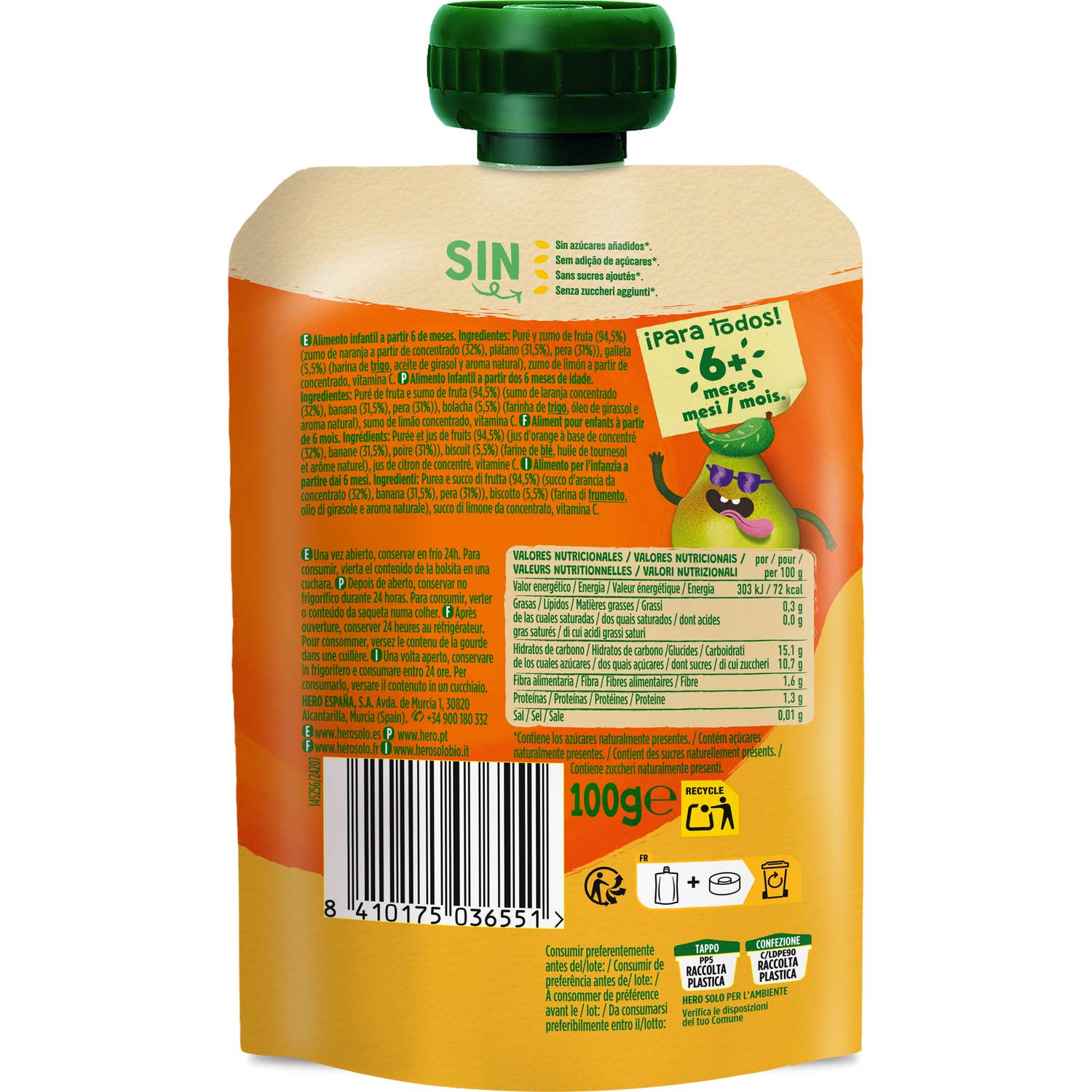 Hero Solo Laranja Banana Pera e Biscoito 100 g é uma opção ideal para proporcionar uma alimentação natural e equilibrada aos bebês a partir de 6 meses. Este produto é elaborado com uma cuidadosa seleção de frutas, garantindo ingredientes 100% naturais sem conservantes nem corantes.