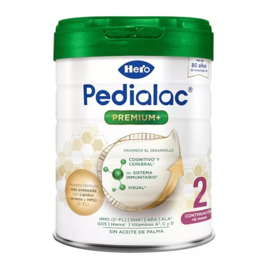 A fórmula Pedialac 2 da Hero Baby contém uma combinação inovadora de ácidos gordos DHA, ARA, proteínas e vitaminas C e D, que ajudam no desenvolvimento e crescimento nutricional adequado do seu bebé. Além disso, a sua fórmula inclui o fornecimento adequado de nutrientes e vitaminas de que o seu bebé necessita para promover o seu desenvolvimento visual.