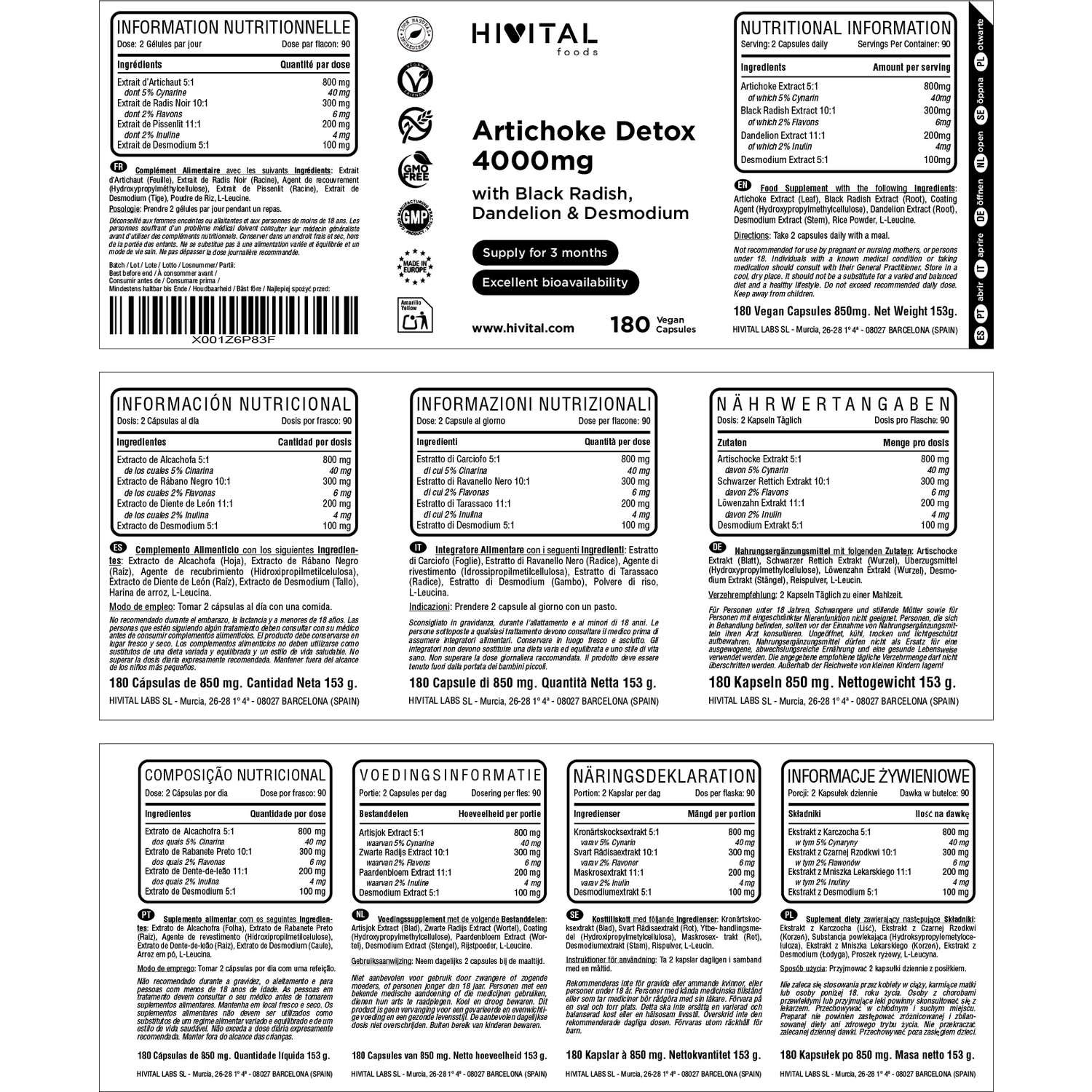 FABRICADO NA ESPANHA sob certificados GMP e ISO. Hivital Foods está registrada na saúde (AESAN) com número 26.019181B.