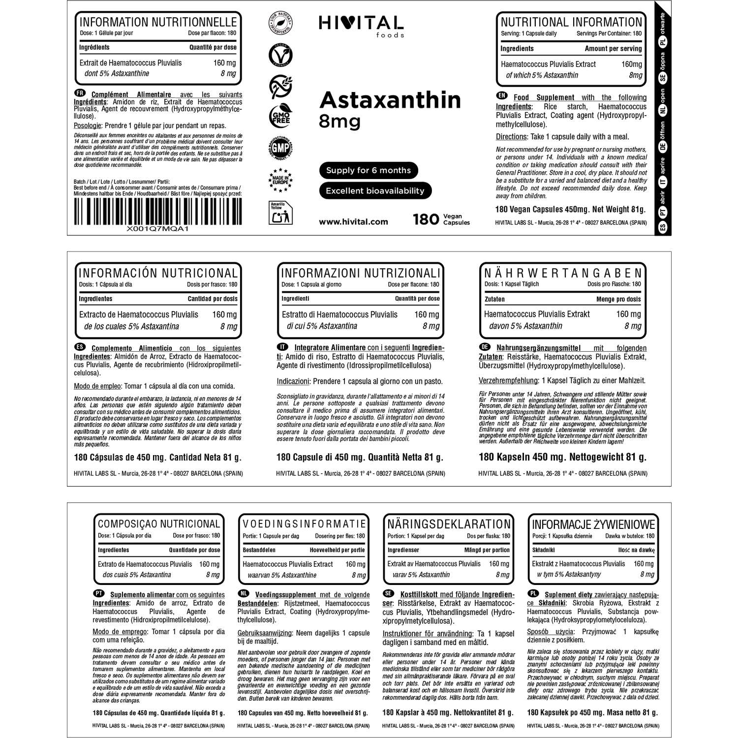 FABRICADO NA ESPANHA sob certificados GMP e ISO. Hivital Foods está registrada na saúde (AESAN) com número 26.019181B.