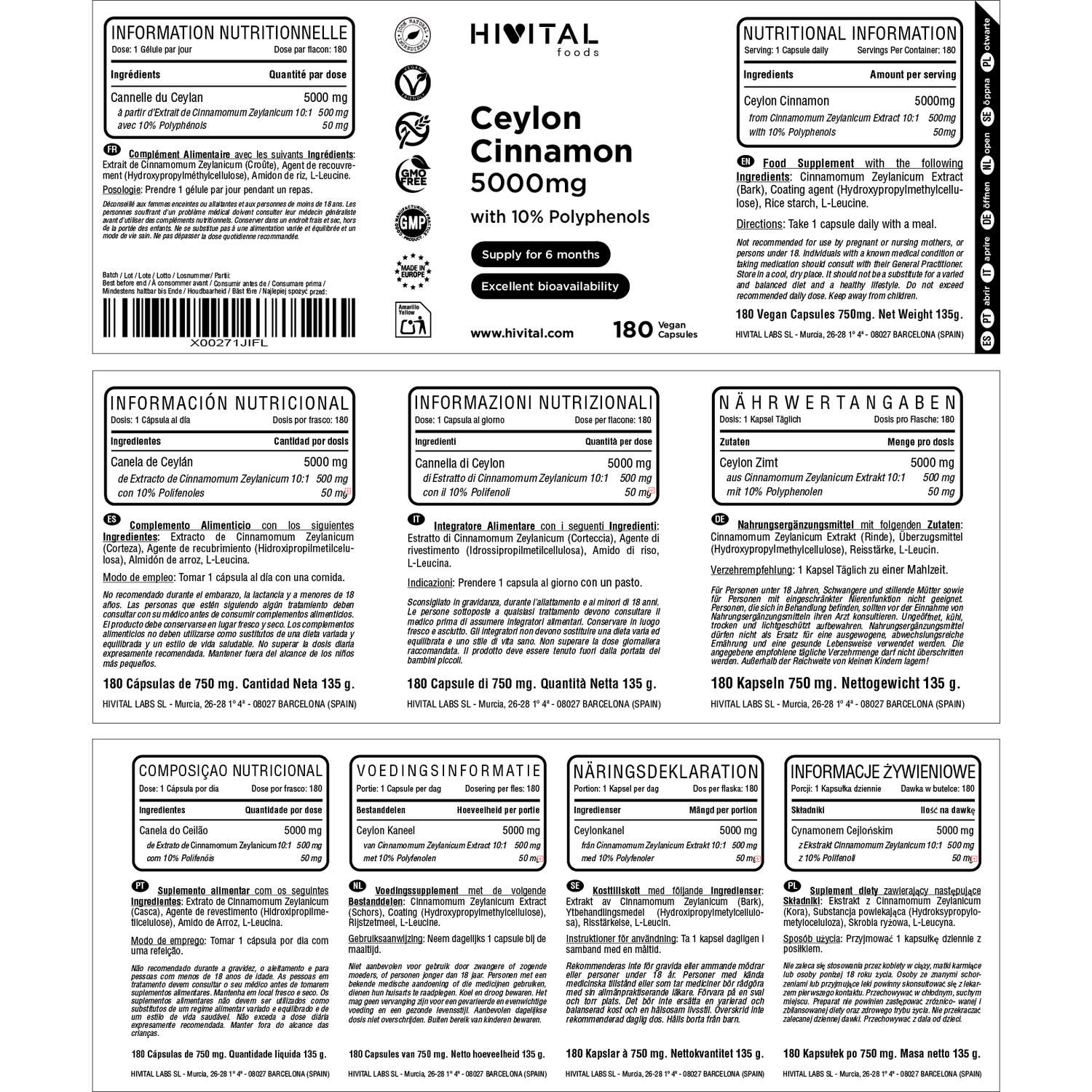 FABRICADO NA ESPANHA sob certificados GMP e ISO. Hivital Foods está registrada na AESAN com número 26.019181B.